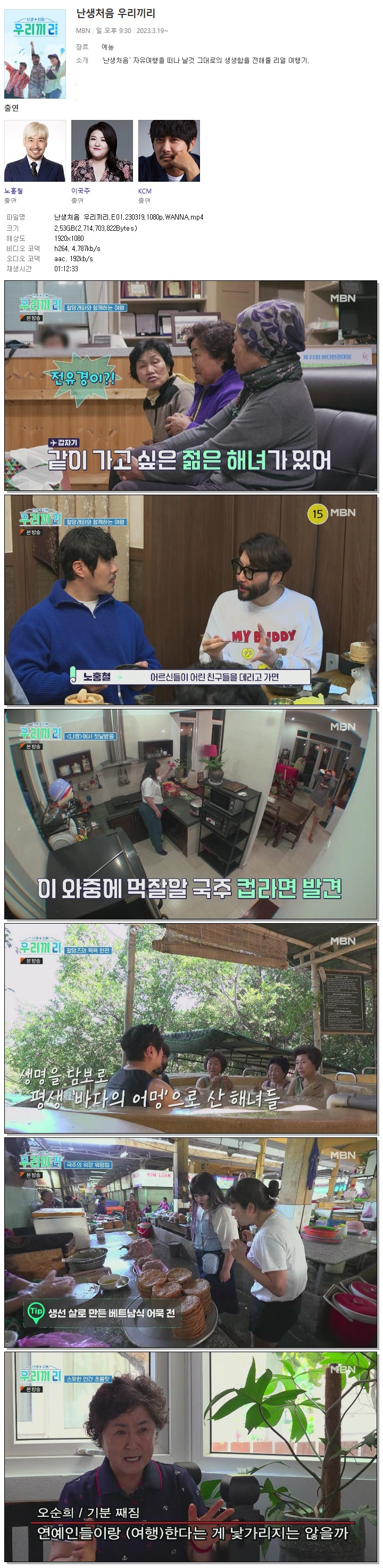 난생처음 우리끼리.E01.230319.1080p.WANNA.mp4 2.5 G 01:12:33 1920x1080