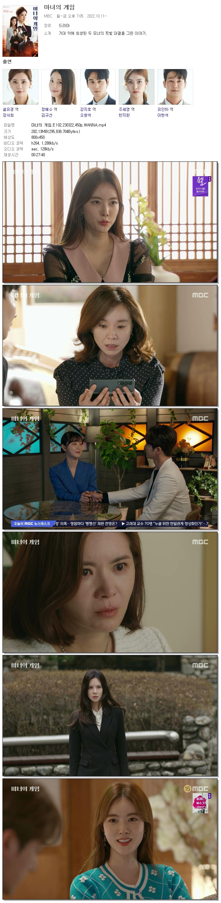 | 마녀의 게임.E102.230322.450p.WANNA.mp4 | 282.1 M | 00:27:40 | 800x450 |