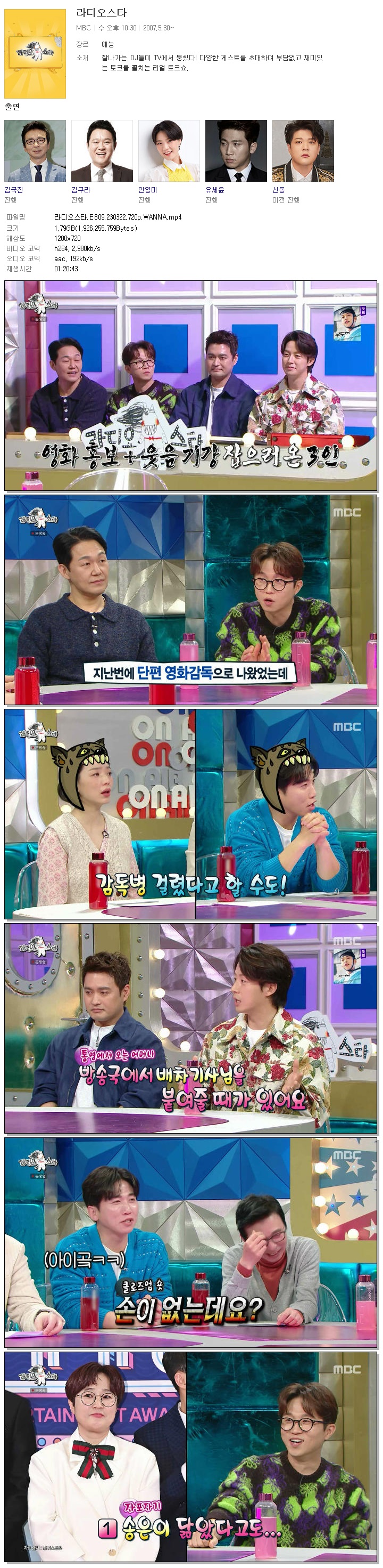 라디오스타.E809.230322.720p.WANNA.mp4 1.8 G 01:20:43 1280x720