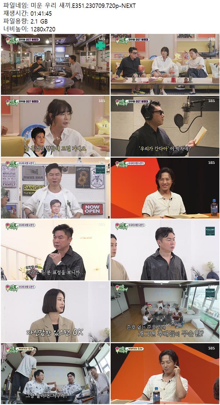 | 미운 우리 새끼.E351.230709.720p-NEXT.mp4 | 2.1 G | 01:41:00 | 1280x720 |
