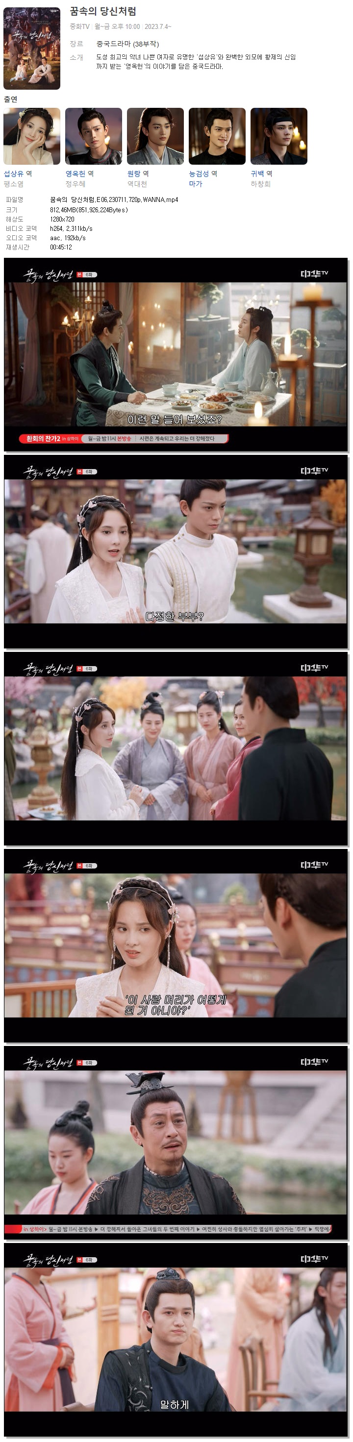 | 꿈속의 당신처럼.E06.230711.720p.WANNA.mp4 | 812.5 M | 00:45:12 | 1280x720 |