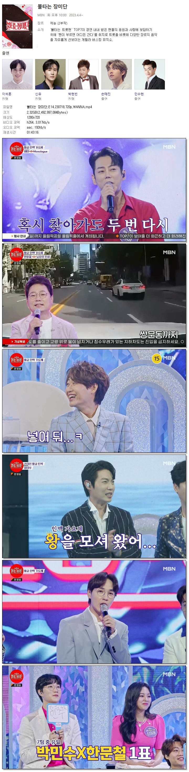 | 불타는 장미단.E14.230718.720p.WANNA.mp4 | 2.3 G | 01:43:16 | 1280x720 |