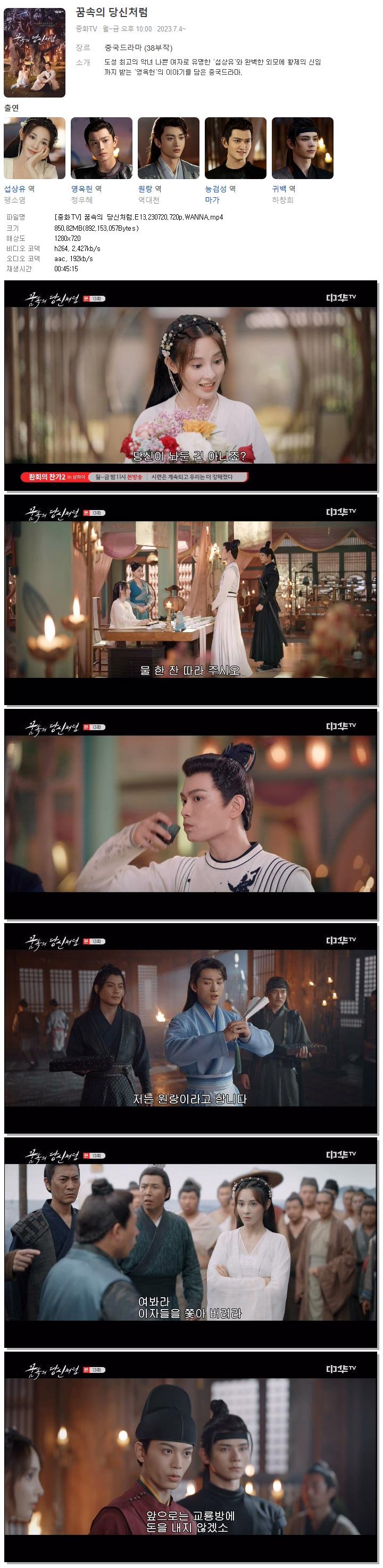 | [중화TV] 꿈속의 당신처럼.E13.230720.720p.WANNA.mp4 | 850.8 M | 00:45:15 | 1280x720 |
