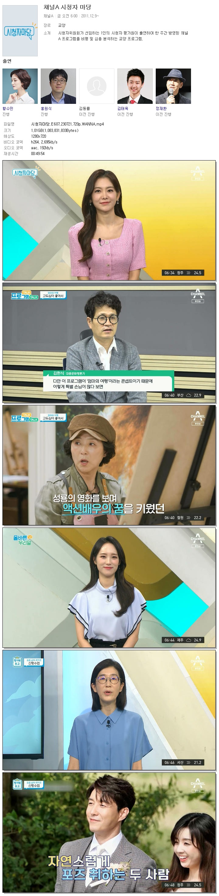 | 시청자마당.E607.230721.720p.WANNA.mp4 | 1 G | 00:49:54 | 1280x720 |
