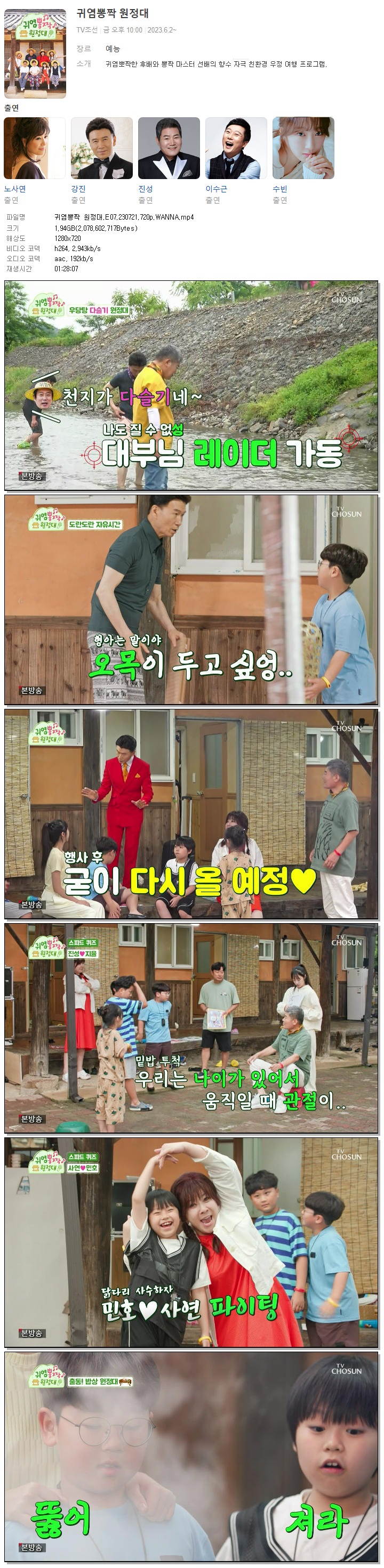 | 귀염뽕짝 원정대.E07.230721.720p.WANNA.mp4 | 1.9 G | 01:28:07 | 1280x720 |