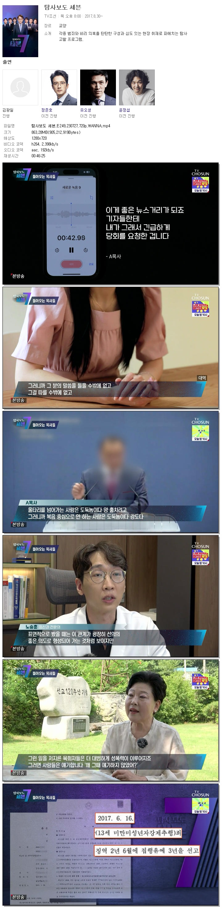 | 탐사보도 세븐.E249.230727.720p.WANNA.mp4 | 863.3 M | 00:46:25 | 1280x720 |