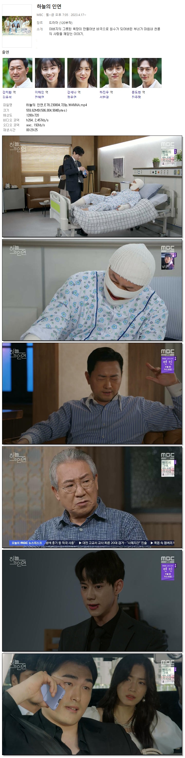 | 하늘의 인연.E78.230804.720p.WANNA.mp4 | 559.6 M | 00:29:25 | 1280x720 |