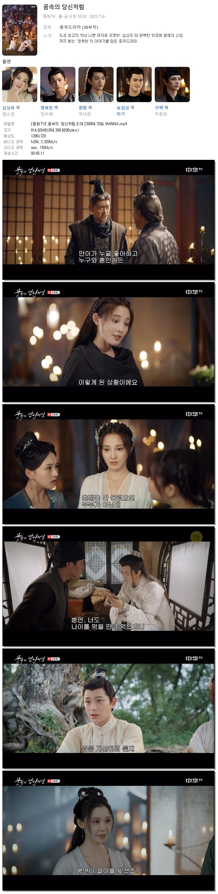 | [중화TV] 꿈속의 당신처럼.E24.230804.720p.WANNA.mp4 | 814.8 M | 00:45:11 | 1280x720 |