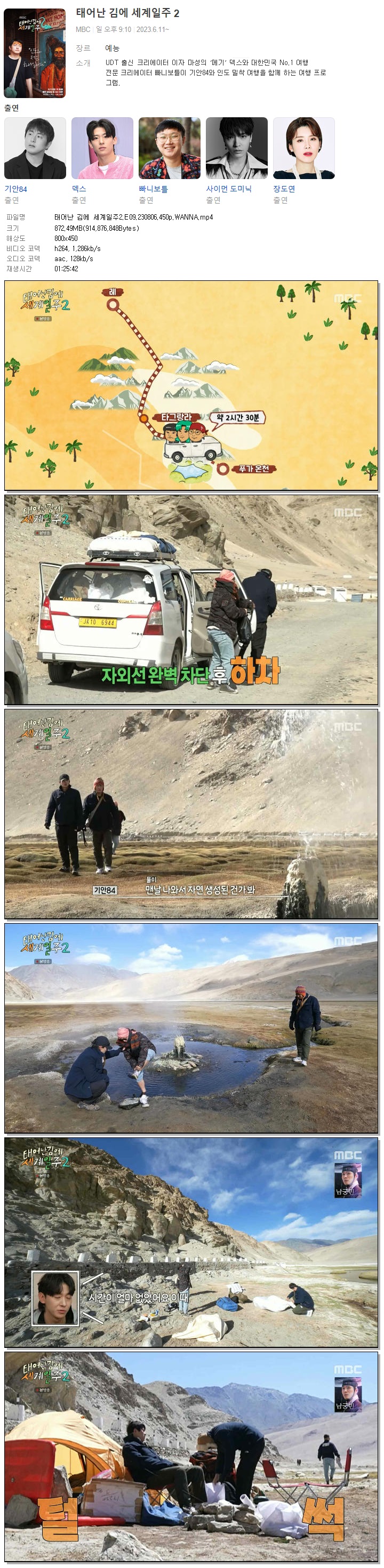 | 태어난 김에 세계일주2.E09.230806.450p.WANNA.mp4 | 872.5 M | 01:25:42 | 800x450 |