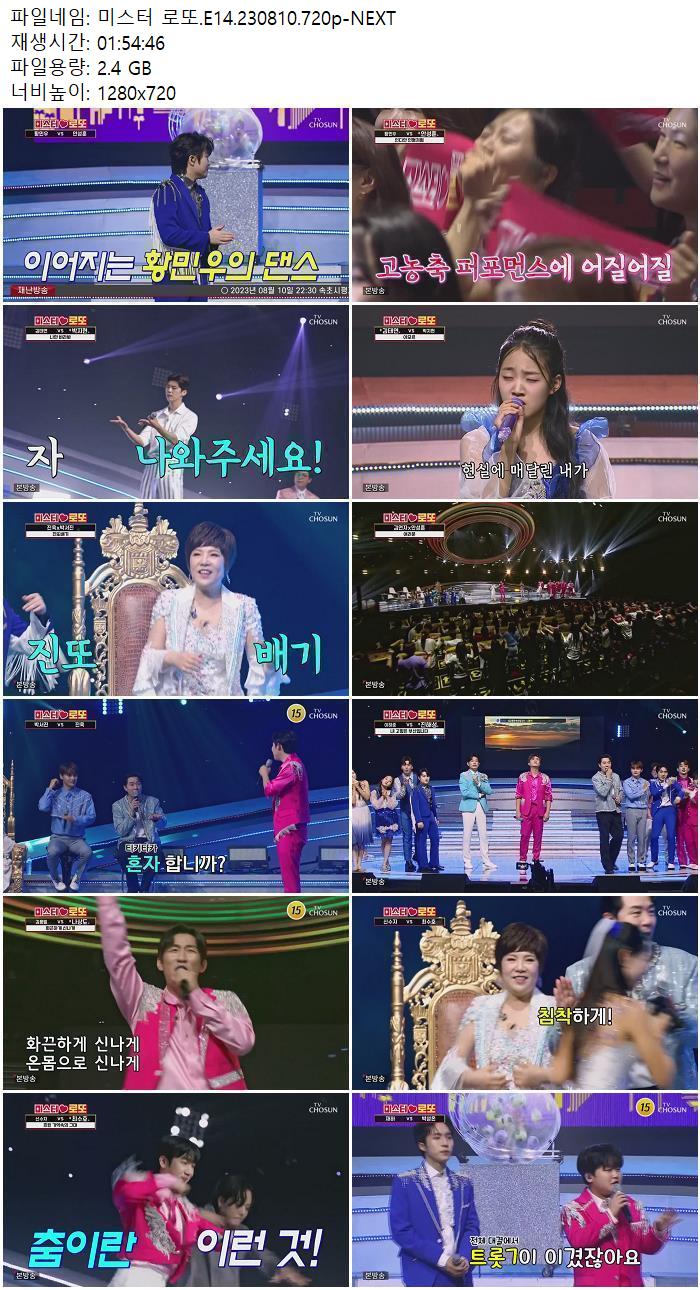 | 미스터 로또.E14.230810.720p-NEXT.mp4 | 2.4 G | 01:54:00 | 1280x720 |