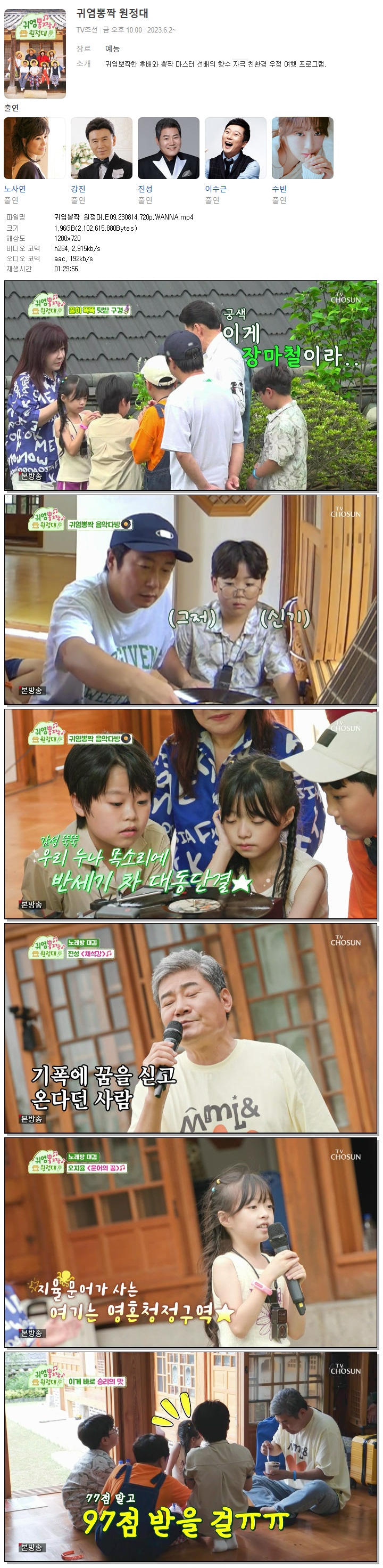 | 귀염뽕짝 원정대.E09.230814.720p.WANNA.mp4 | 2 G | 01:29:56 | 1280x720 |