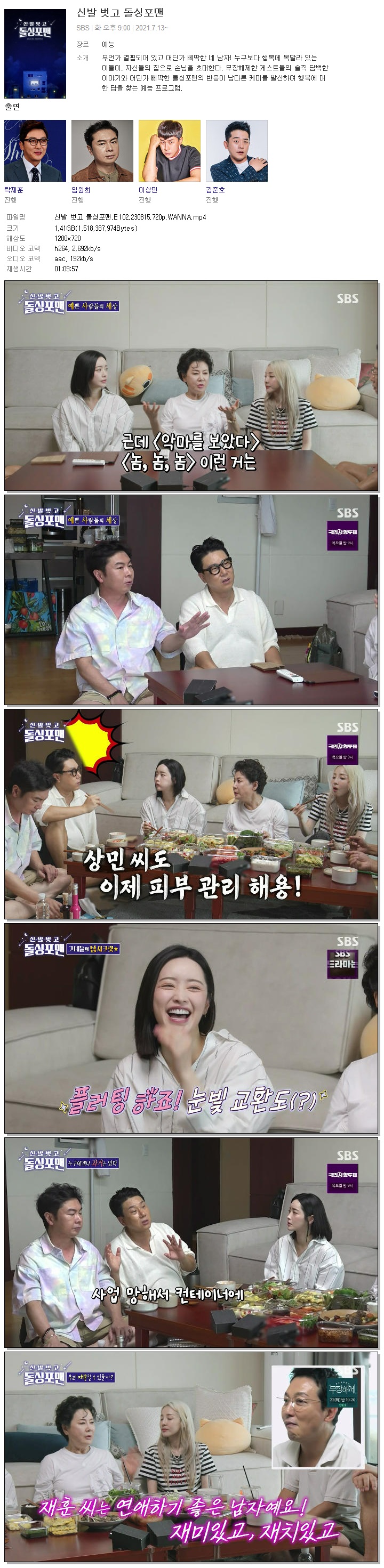 | 신발 벗고 돌싱포맨.E102.230815.720p.WANNA.mp4 | 1.4 G | 01:09:57 | 1280x720 |