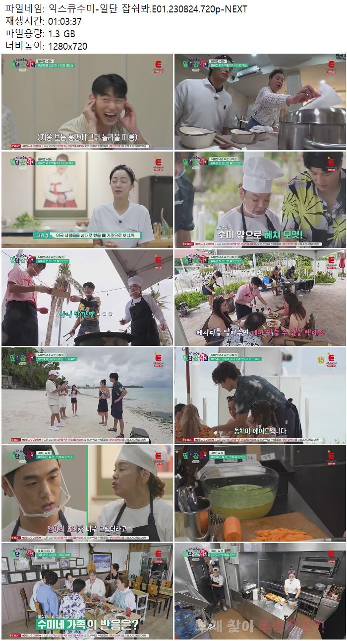 | 익스큐수미-일단 잡숴봐.E01.230824.720p-NEXT.mp4 | 1.3 G | 01:03:00 | 1280x720 |