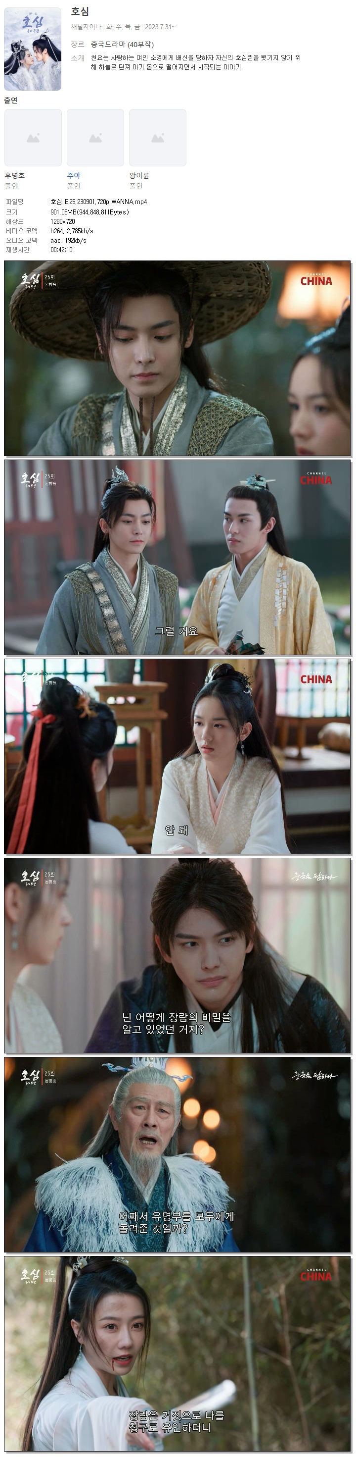 | 호심.E25.230901.720p.WANNA.mp4 | 901.1 M | 00:42:10 | 1280x720 |