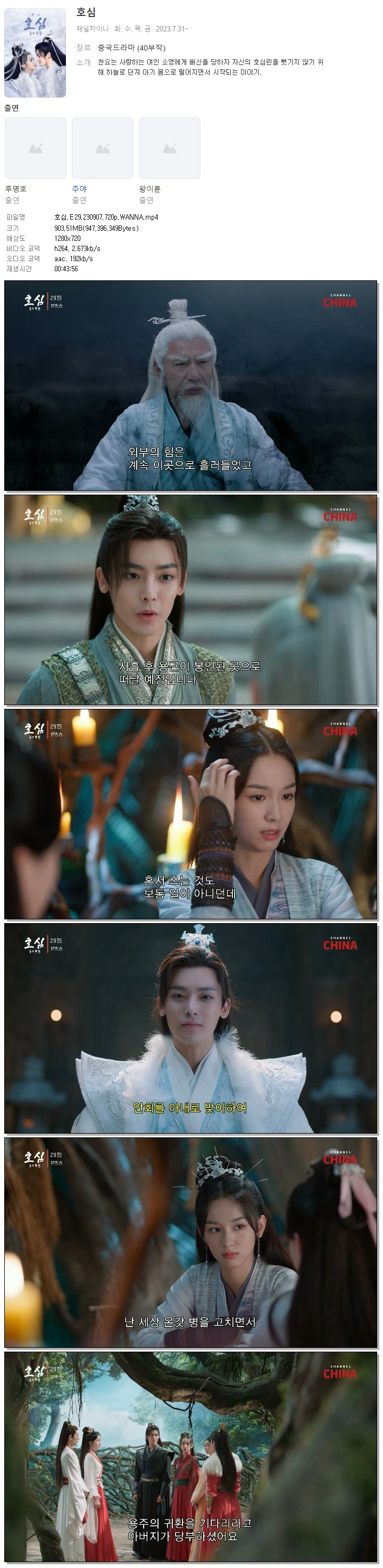 | 호심.E29.230907.720p.WANNA.mp4 | 903.5 M | 00:43:56 | 1280x720 |