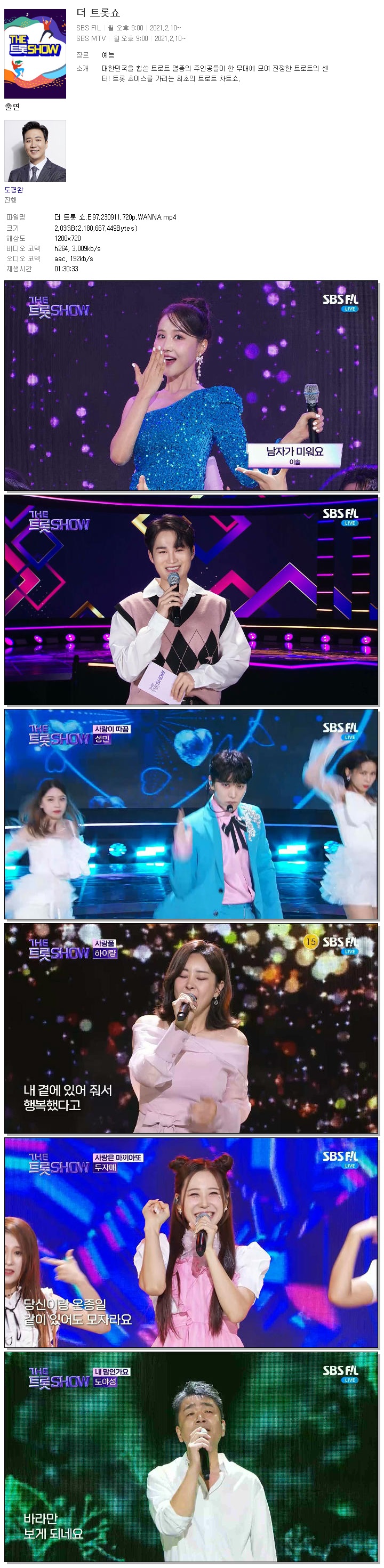 | 더 트롯 쇼.E97.230911.720p.WANNA.mp4 | 2 G | 01:30:33 | 1280x720 |