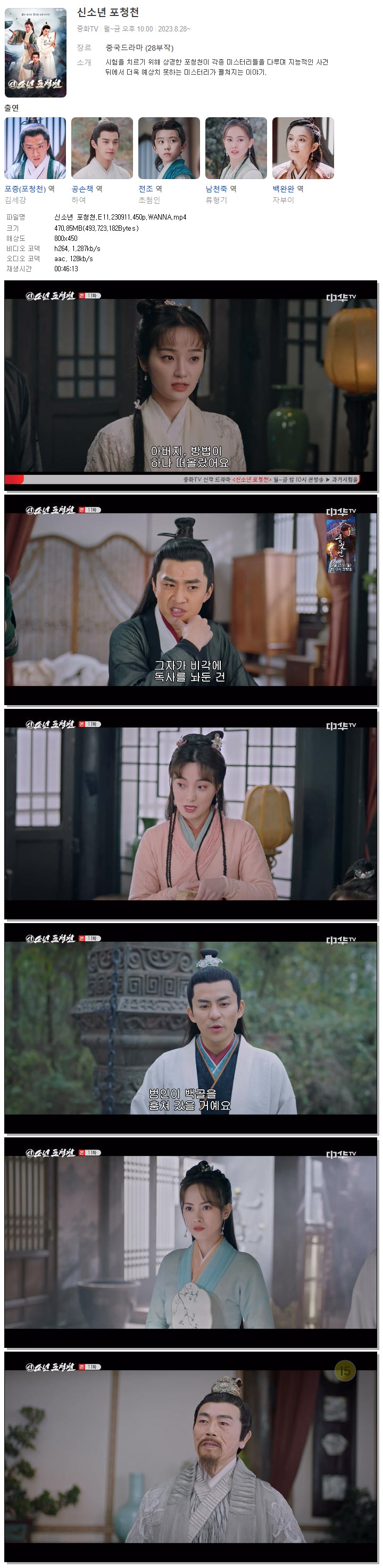 | 신소년 포청천.E11.230911.450p.WANNA.mp4 | 470.9 M | 00:46:13 | 800x450 |