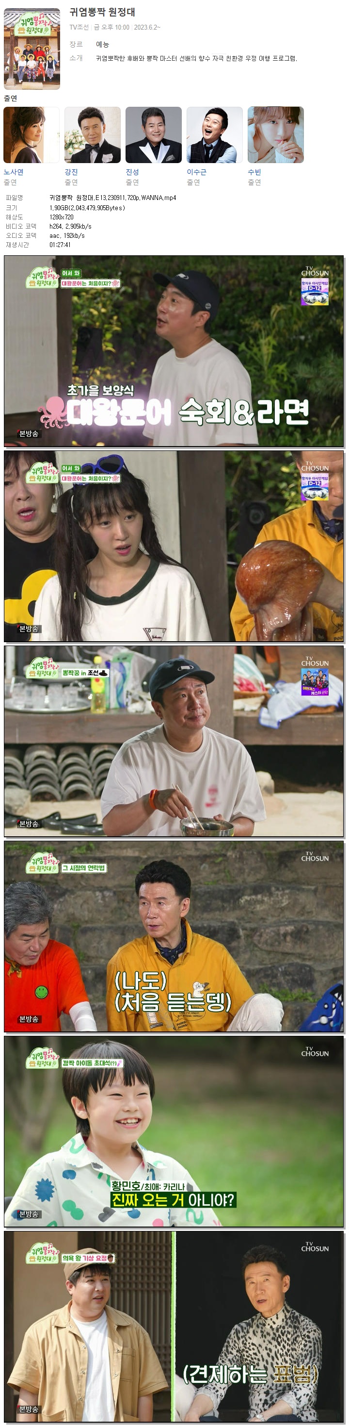 | 귀염뽕짝 원정대.E13.230911.720p.WANNA.mp4 | 1.9 G | 01:27:41 | 1280x720 |