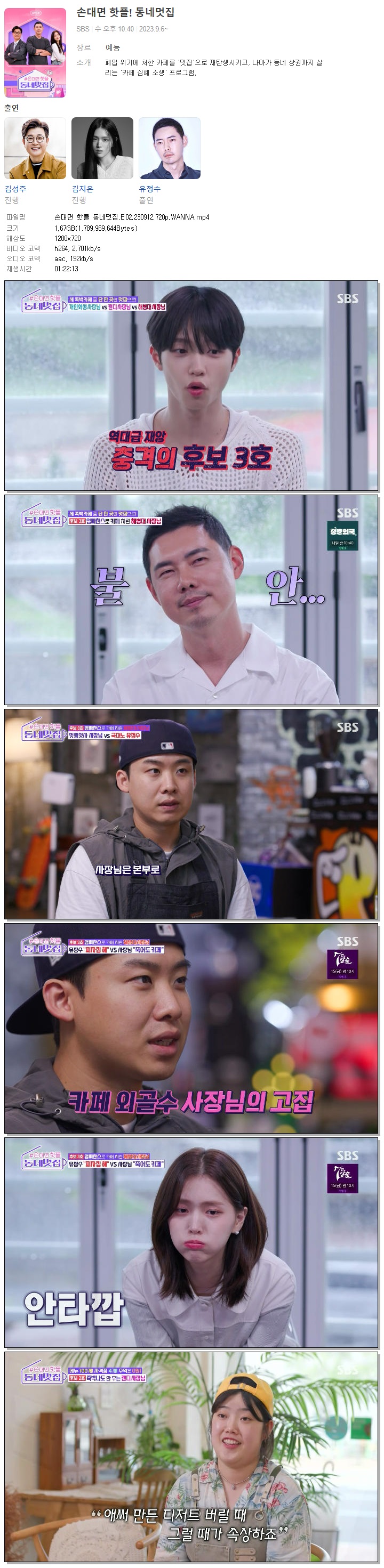 | 손대면 핫플 동네멋집.E02.230912.720p.WANNA.mp4 | 1.7 G | 01:22:13 | 1280x720 |