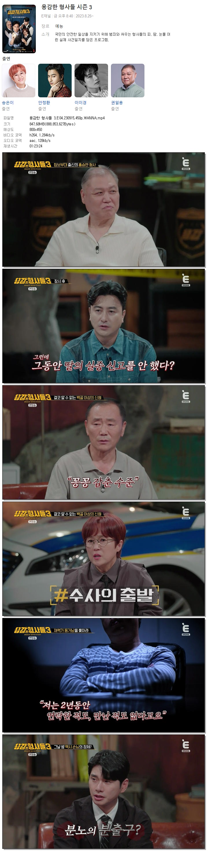 | 용감한 형사들 3.E04.230915.450p.WANNA.mp4 | 847.7 M | 01:23:24 | 800x450 |