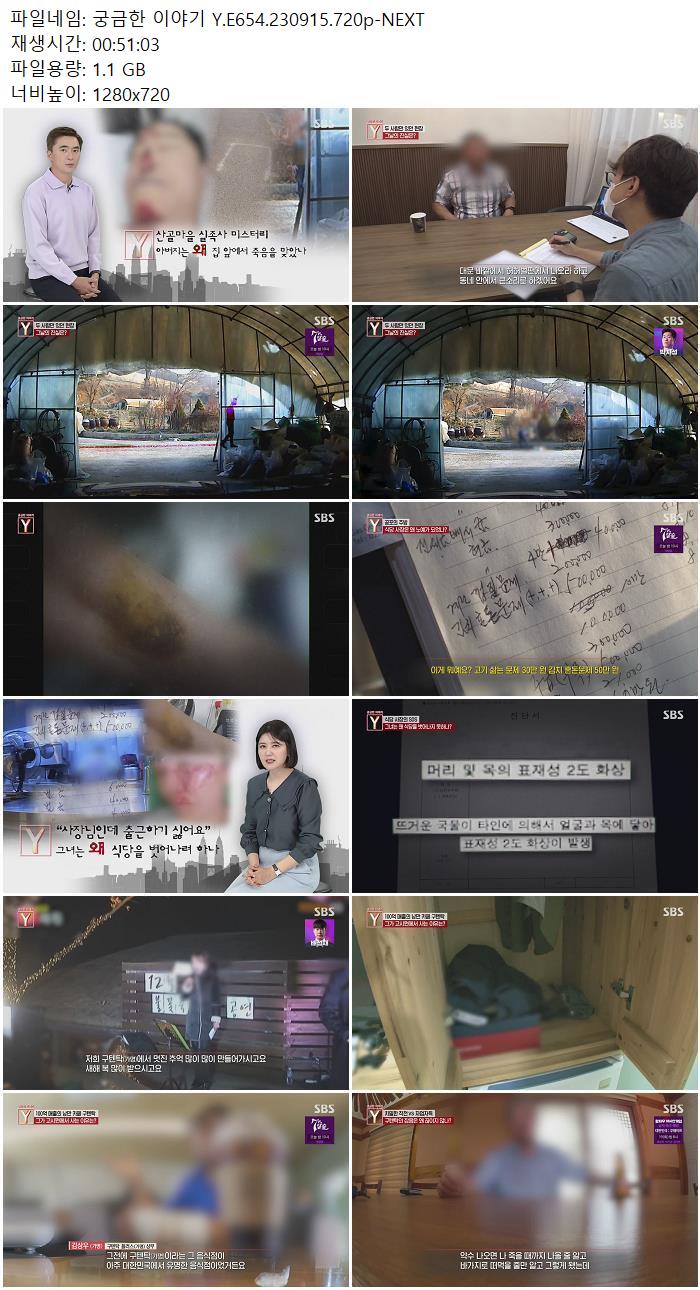 | 궁금한 이야기 Y.E654.230915.720p-NEXT.mp4 | 1.1 G | 00:51:03 | 1280x720 |