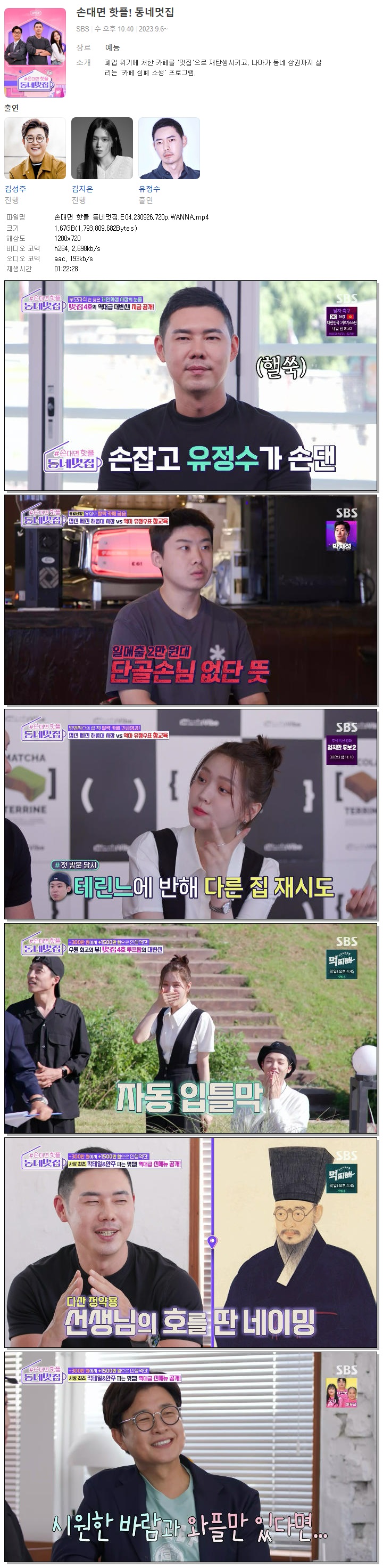 | 손대면 핫플 동네멋집.E04.230926.720p.WANNA.mp4 | 1.7 G | 01:22:28 | 1280x720 |