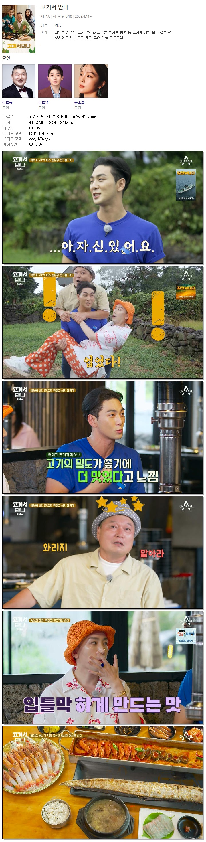| 고기서 만나.E24.230930.450p.WANNA.mp4 | 466.7 M | 00:45:55 | 800x450 |