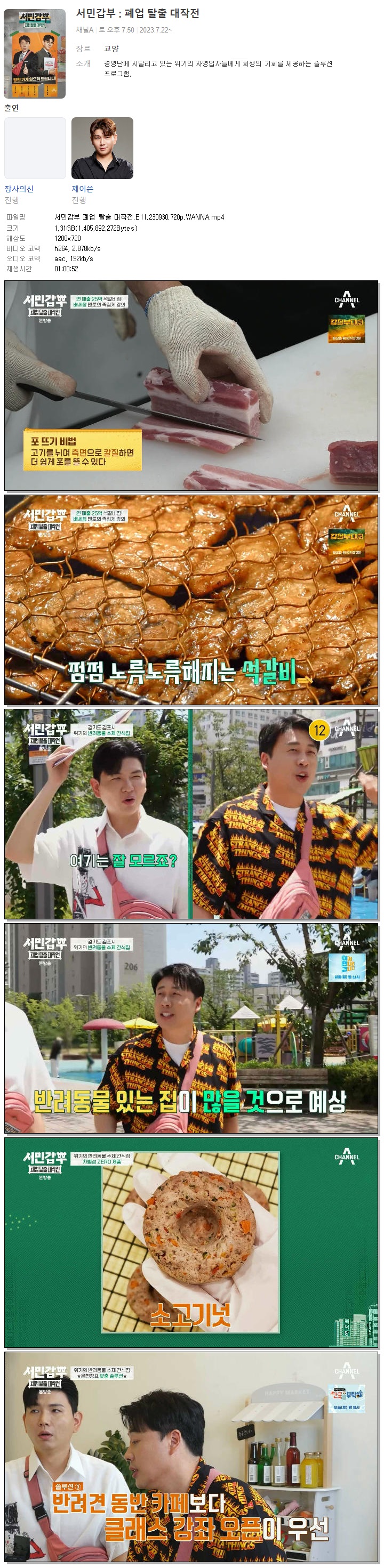 | 서민갑부 폐업 탈출 대작전.E11.230930.720p.WANNA.mp4 | 1.3 G | 01:00:52 | 1280x720 |