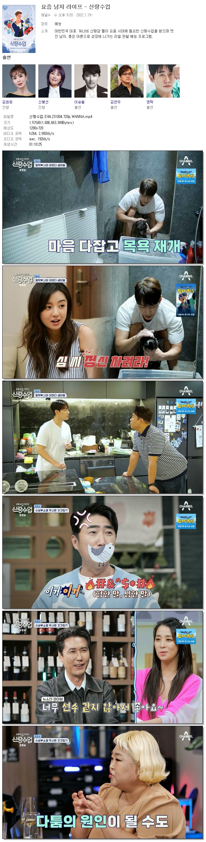 | 신랑수업.E84.231004.720p.WANNA.mp4 | 1.6 G | 01:10:25 | 1280x720 |
