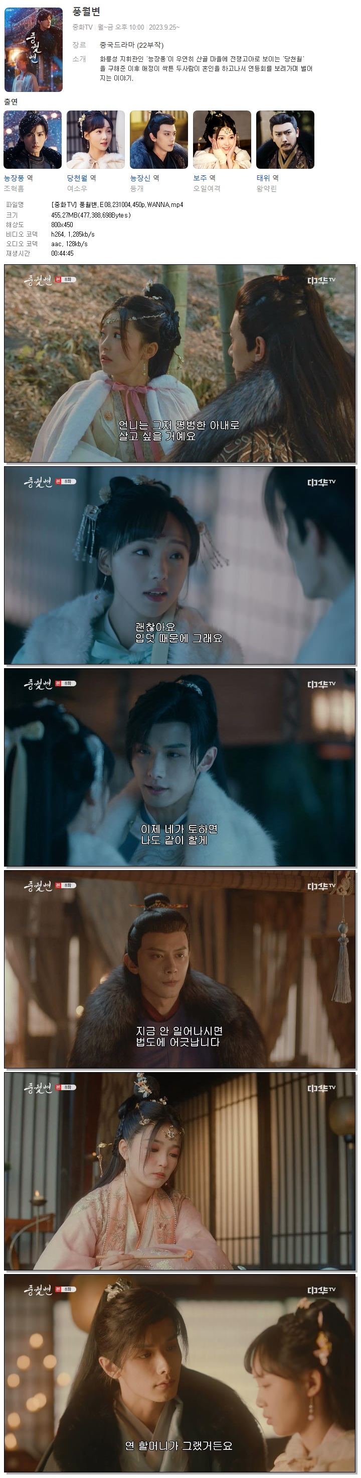 | [중화TV] 풍월변.E08.231004.450p.WANNA.mp4 | 455.3 M | 00:44:45 | 800x450 |