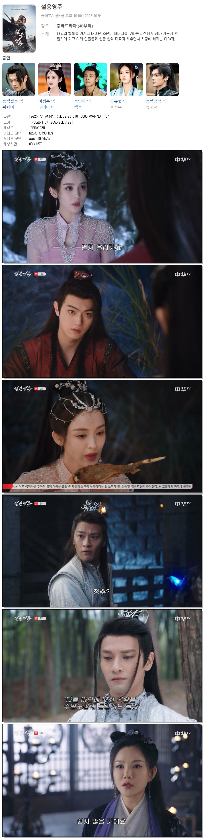 [중화TV] 설응영주.E02.231010.1080p.WANNA.mp4 1.5 G 00:41:57 1920x1080