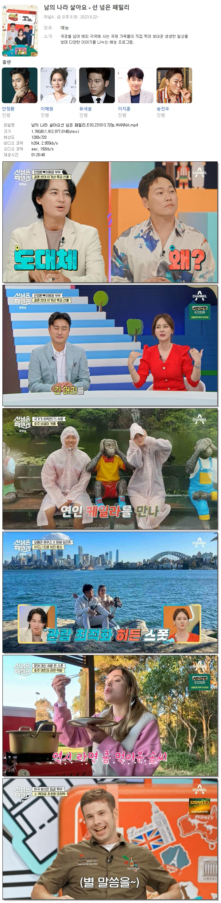 | 남의 나라 살아요선 넘은 패밀리.E03.231013.720p.WANNA.mp4 | 1.8 G | 01:20:48 | 1280x720 |