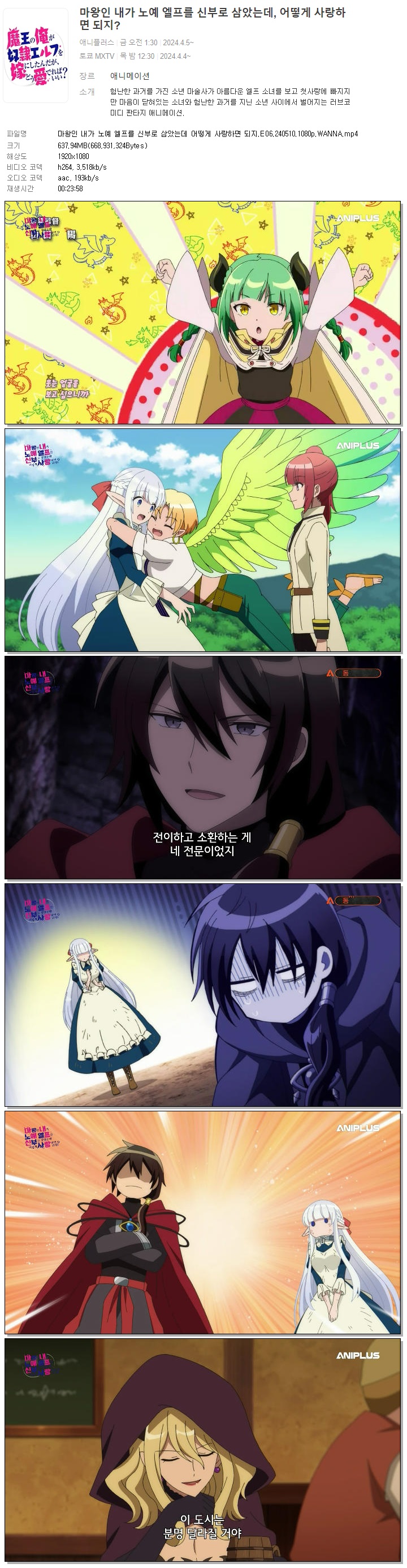 | 마왕인 내가 노예 엘프를 신부로 삼았는데 어떻게 사랑하면 되지.E06.240510.1080p.WANNA.mp4 | 637.9 M | 00:23:58 | 1920x1080 |