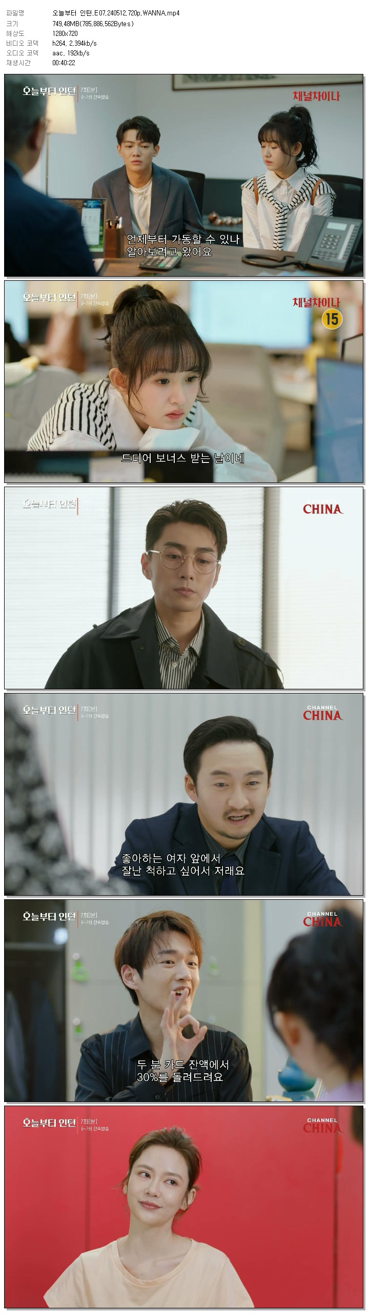 | 오늘부터 인턴.E07.240512.720p.WANNA.mp4 | 749.5 M | 00:40:22 | 1280x720 |