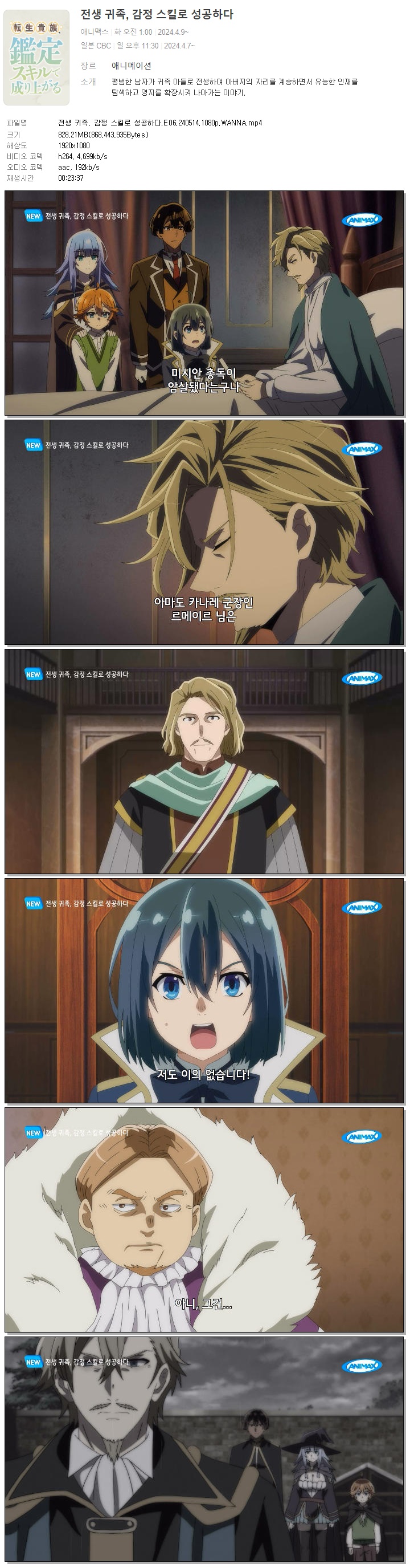 | 전생 귀족, 감정 스킬로 성공하다.E06.240514.1080p.WANNA.mp4 | 828.2 M | 00:23:37 | 1920x1080 |
