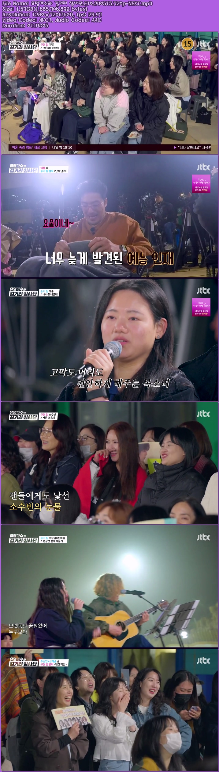 | 유명가수와 길거리 심사단.E10.240515.720p-NEXT.mp4 | 1.6 G | 01:14:00 | 1280x720 |