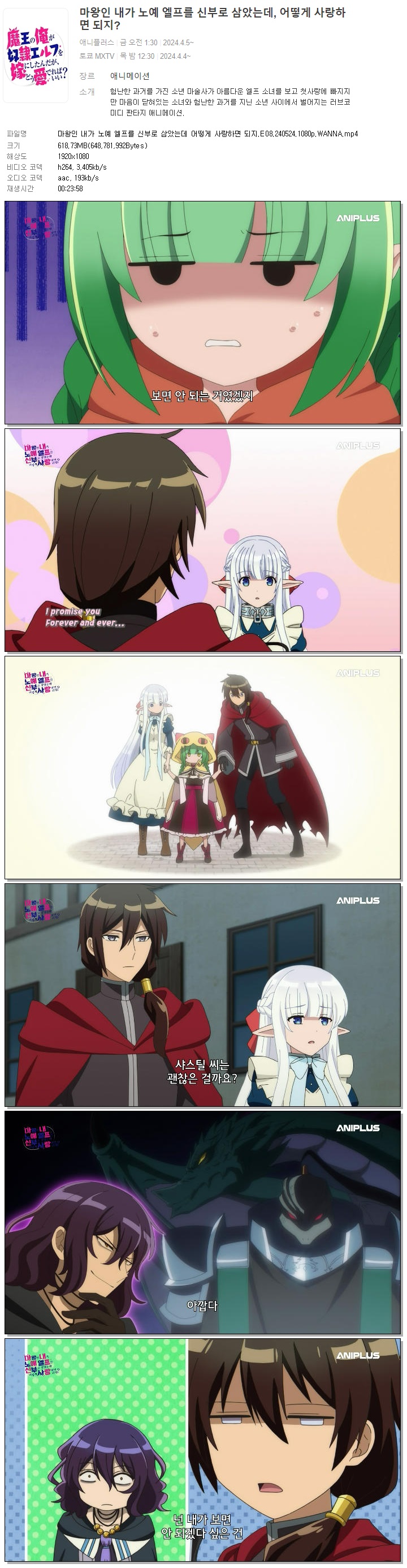 | 마왕인 내가 노예 엘프를 신부로 삼았는데 어떻게 사랑하면 되지.E08.240524.1080p.WANNA.mp4 | 618.7 M | 00:23:58 | 1920x1080 |