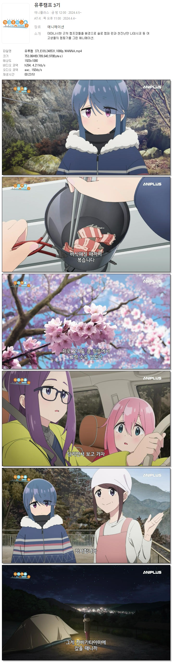 | 유루캠 3기.E09.240531.1080p.WANNA.mp4 | 753.1 M | 00:23:51 | 1920x1080 |