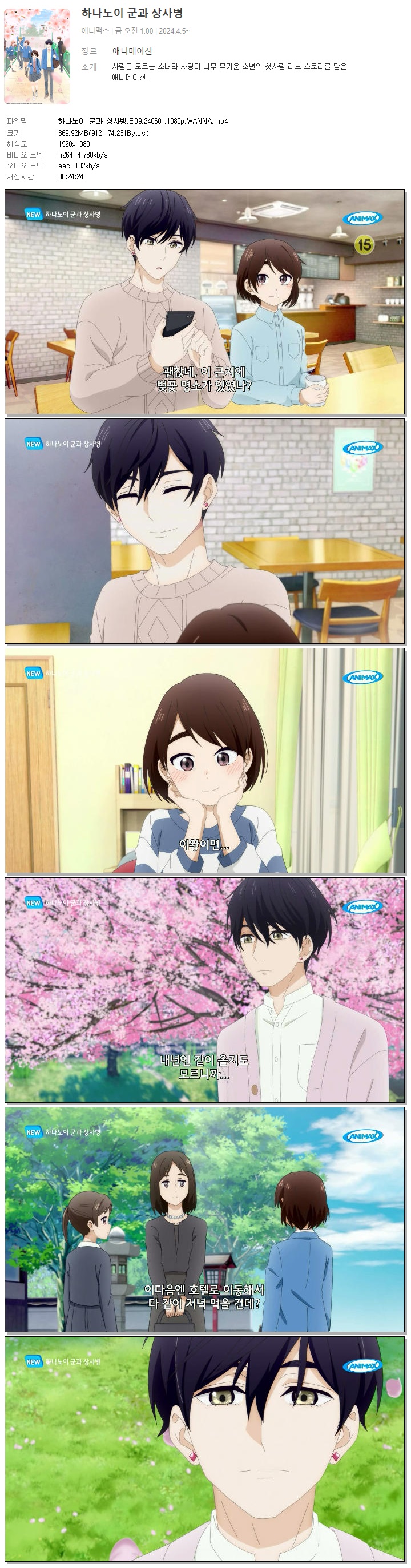 | 하나노이 군과 상사병.E09.240601.1080p.WANNA.mp4 | 869.9 M | 00:24:24 | 1920x1080 |