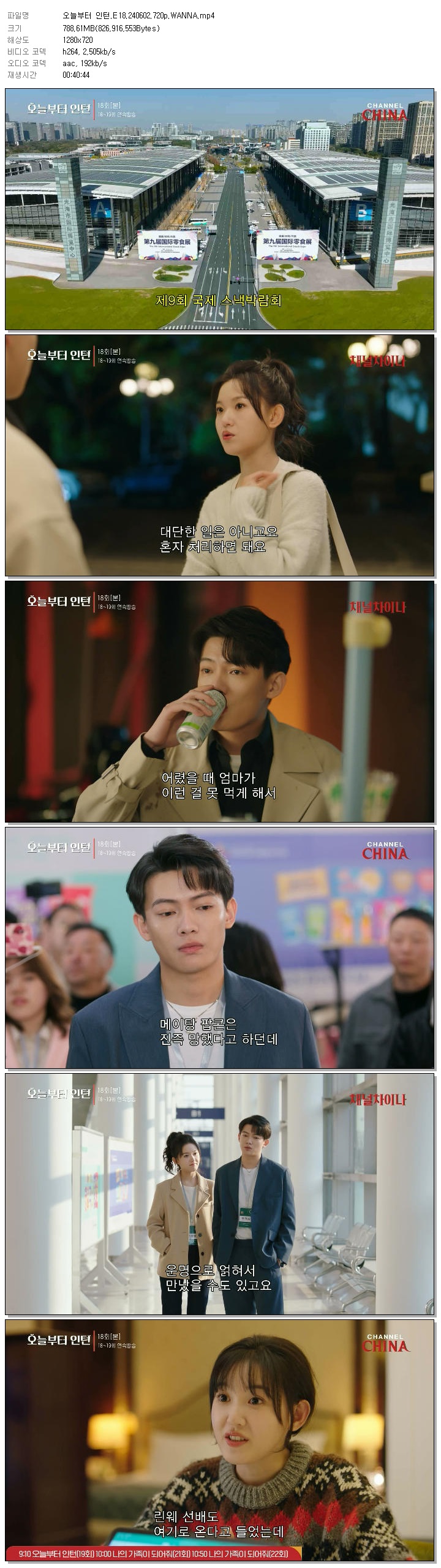 | 오늘부터 인턴.E18.240602.720p.WANNA.mp4 | 788.6 M | 00:40:44 | 1280x720 |