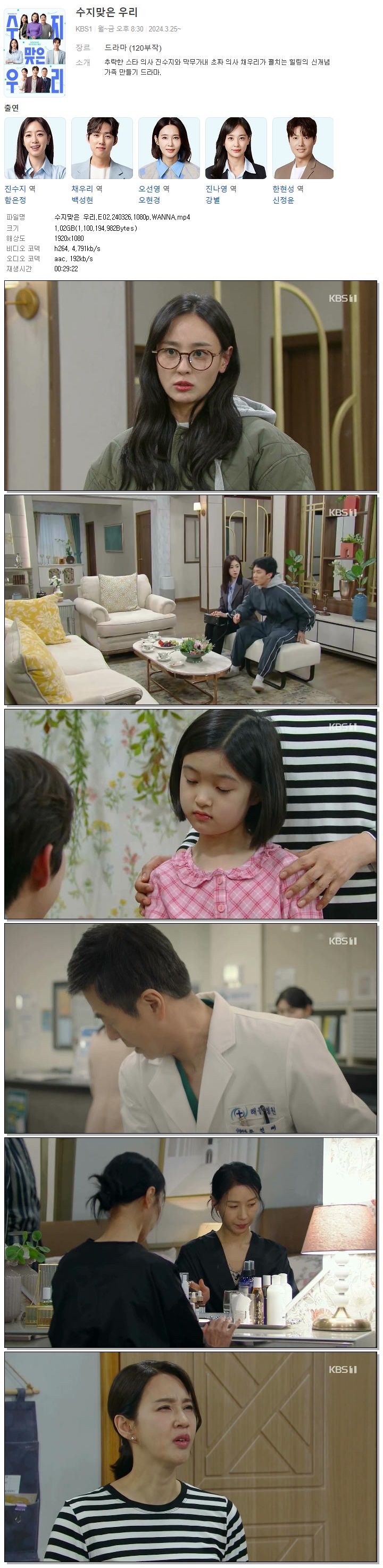 | 수지맞은 우리.E02.240326.1080p.WANNA.mp4 | 1 G | 00:29:22 | 1920x1080 |