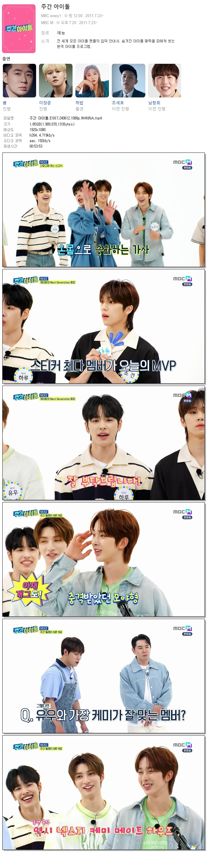 | 주간 아이돌.E667.240612.1080p.WANNA.mp4 | 1.9 G | 00:53:53 | 1920x1080 |