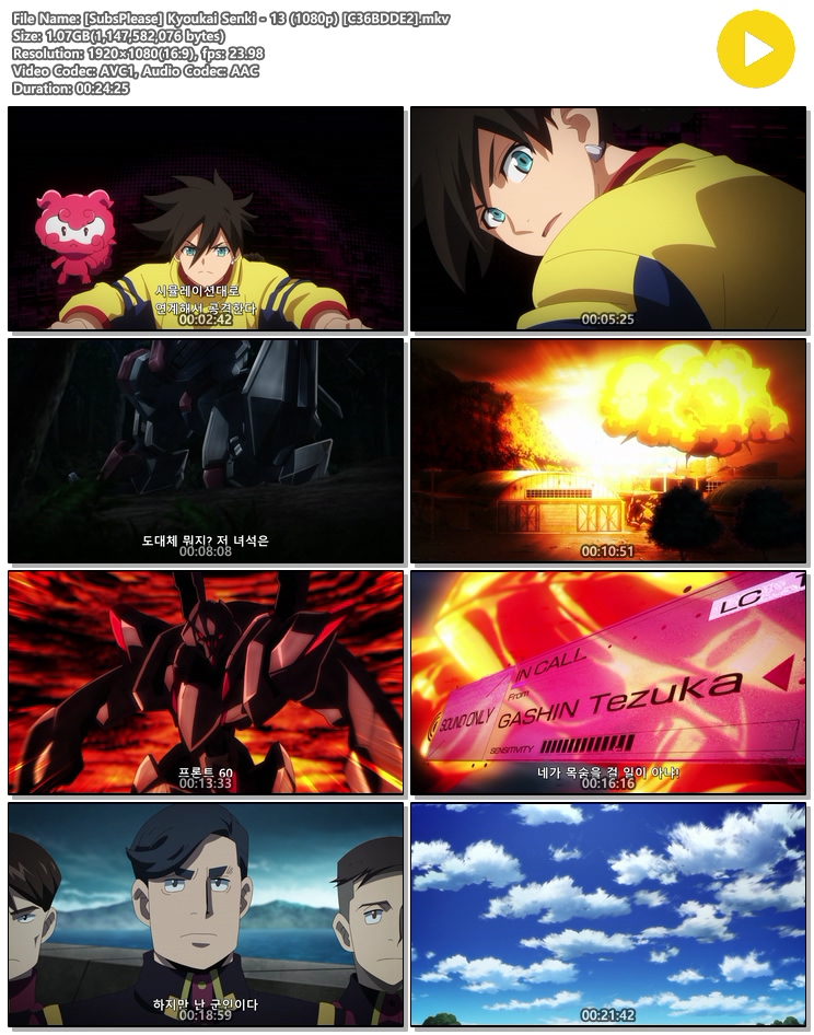 | [SubsPlease] Kyoukai Senki - 13 (1080p) [C36BDDE2].mkv | 1.1 G | 00:24:25 | 1920x1080 |