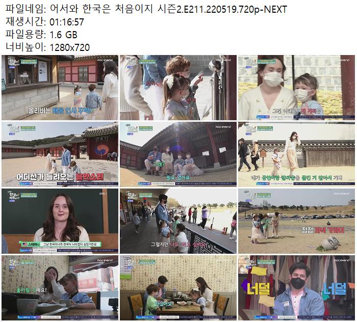 | 어서와 한국은 처음이지 시즌2.E211.220519.720p-NEXT.mp4 | 1.6 G | 01:16:57 | 1280x720 |