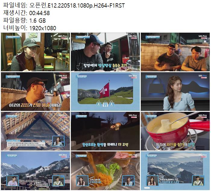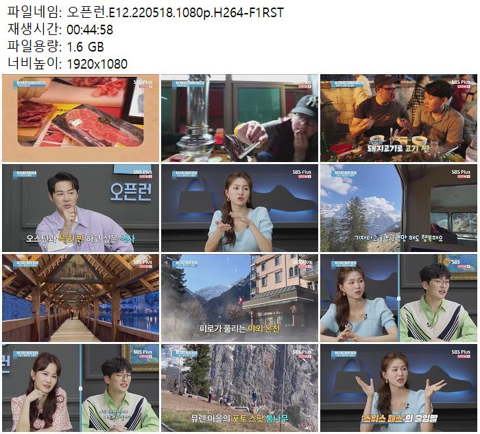 | 오픈런.E12.220518.1080p.H264-F1RST.mp4 | 1.6 G | 00:44:58 | 1920x1080 |