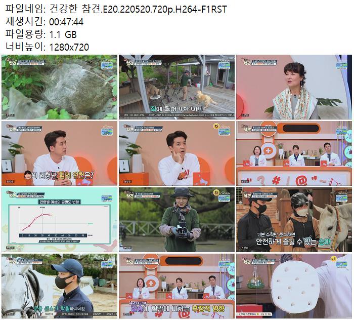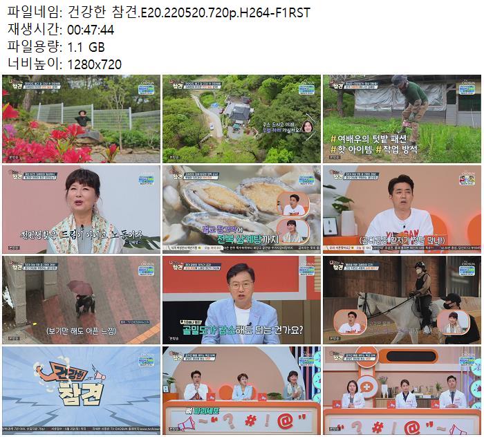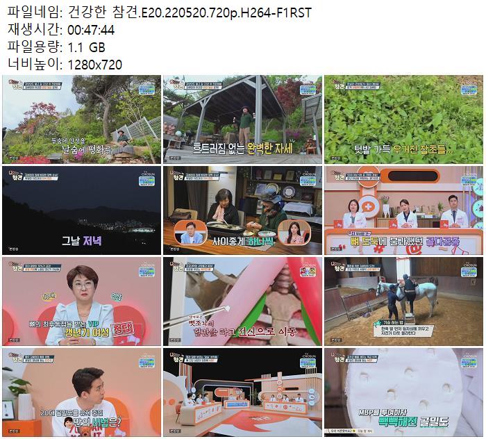 | 건강한 참견.E20.220520.720p.H264-F1RST.mp4 | 1.1 G | 00:47:44 | 1280x720 |