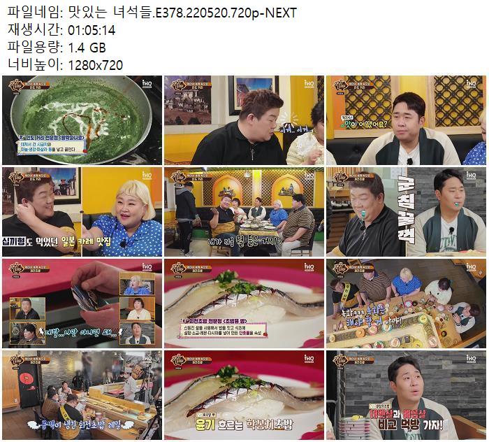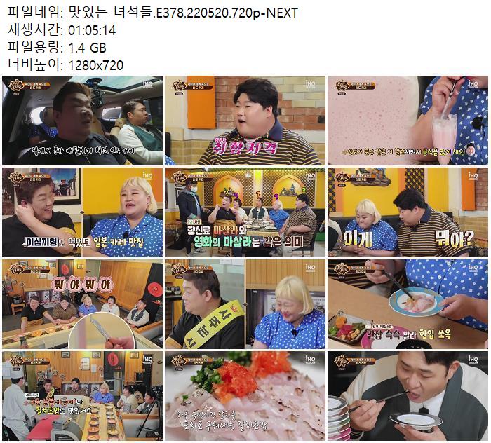 맛있는 녀석들.E378.220520.720p-NEXT.mp4 1.4 G 01:05:14 1280x720