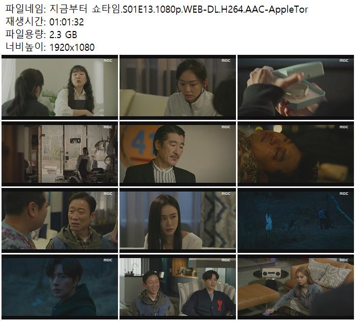| 지금부터 쇼타임.S01E13.1080p.WEB-DL.H264.AAC-AppleTor.mp4 | 2.3 G | 01:01:32 | 1920x1080 |