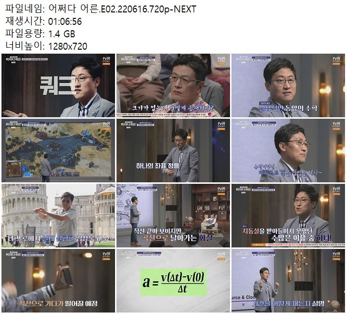 | 어쩌다 어른.E02.220616.720p-NEXT.mp4 | 1.4 G | 01:06:56 | 1280x720 |