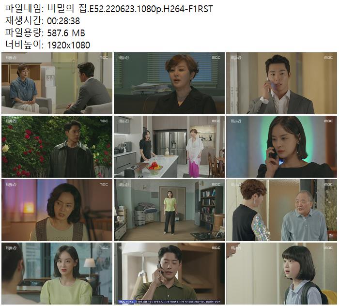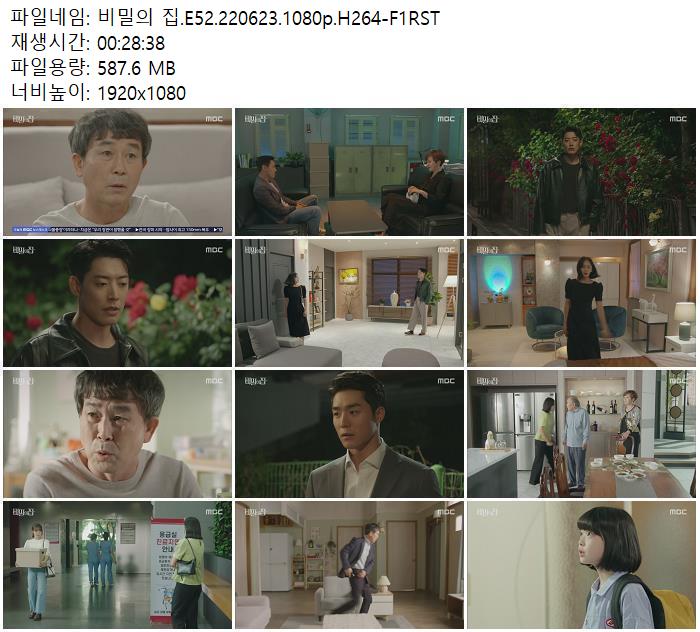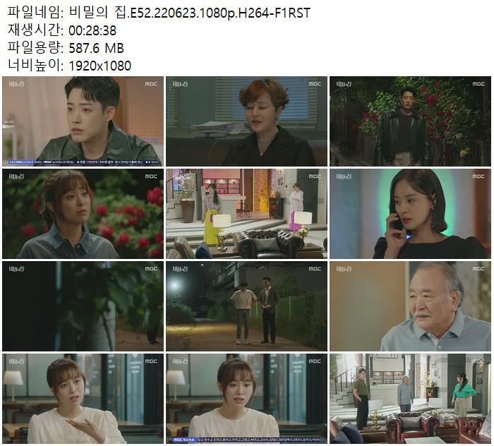 | 비밀의 집.E52.220623.1080p.H264-F1RST.mp4 | 587.6 M | 00:28:38 | 1920x1080 |